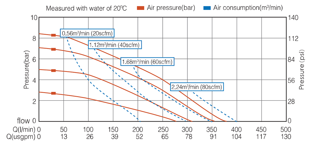| Consommation maximale d'air | 125 scfm(3,5 m³/min) |