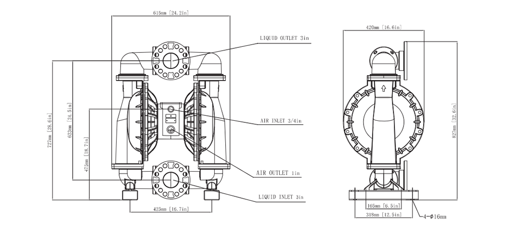 | Taille d'aspiration et de refoulement | 3 pouces /Npt /F |